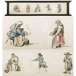 Chaque plaque est composée de 4 vues circulaires peintes à la main représentant des petits métiers.