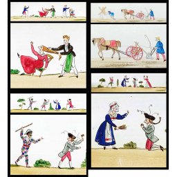5 plaques peintes à la main ayant été trouvées avec une lanterne magique de colporteur Hollandaise. ( voir la rubrique L.M. 1750 - 1830 ) ( LM 98 )