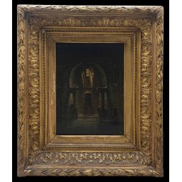 Intérieur de chapelle, huile sur panneau. Non signé.