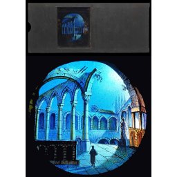 Bel état d'origine pour cette plaque animée française finement peinte à la main vers 1850 - 70. Titrée RUINES D'UN COUVENT - EFFET DE LUNE