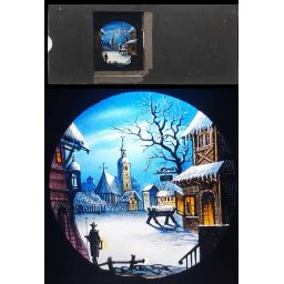 Grande plaque de lanterne magique à manivelle, d'origine allemande vers 1850.