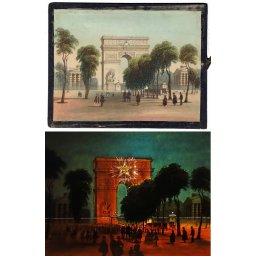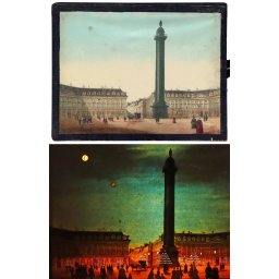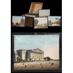 Boite de 25 plaques de polyorama panoptique de la 3ème dimension : 19 x 24 cm. Il s'agit des 25 plaques suivantes