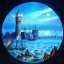 Un bateau à vapeur passe devant un phare. Titrée BELL ROCK LIVERPOOL