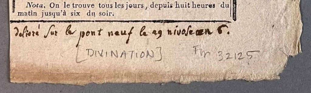 Inscription manuscrite en bas : délivré sur le Pont Neuf le 29 nivose an 6.
