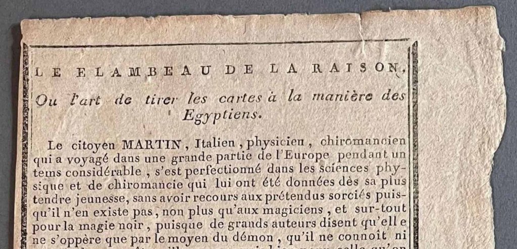 Le Flambeau de la raison ou l'Art de tirer les cartes à la manière des Égyptiens.
