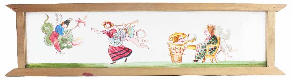 Exceptionnelle plaque à système peinte à la main dans un encadrement de bois typique de la fin du XVIIIème, début XIXème.