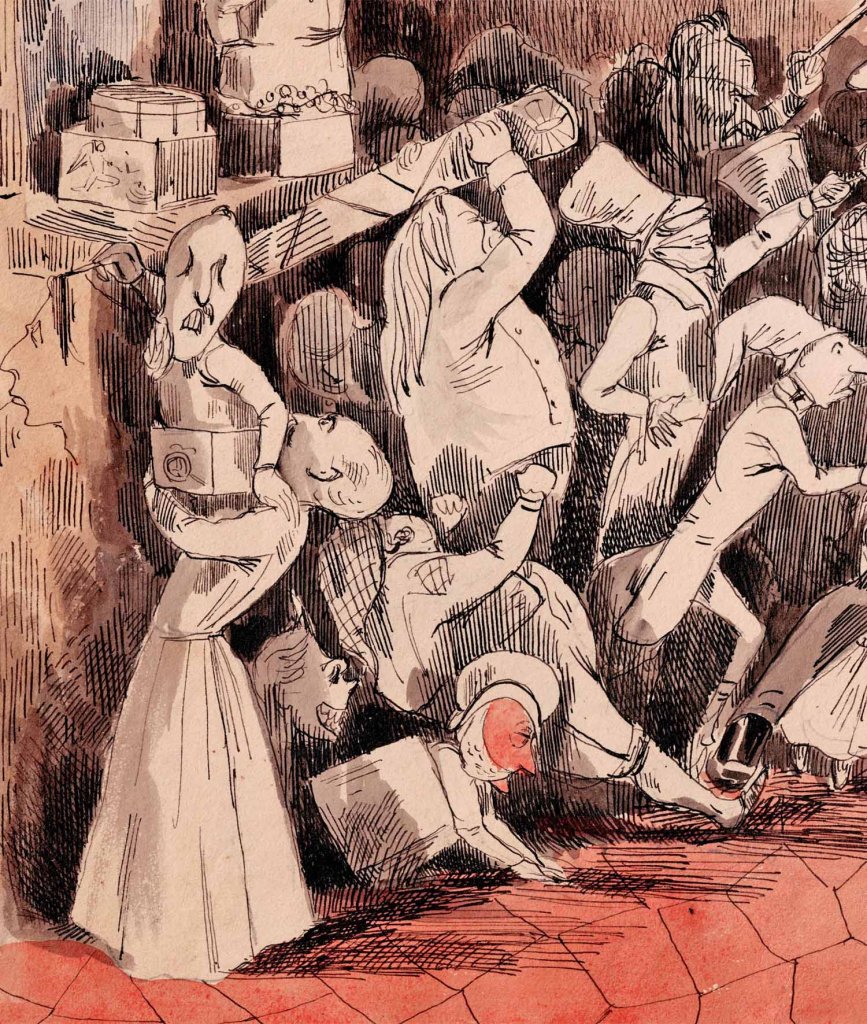 Dessin au lavis d'après une lithographie anonyme de 1840.