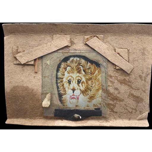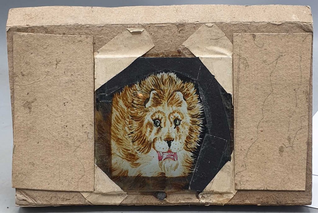 Montée sur carton et papier cette tête de lion vous suit du regard et bouge la langue. 11.2 x 18.8 cm