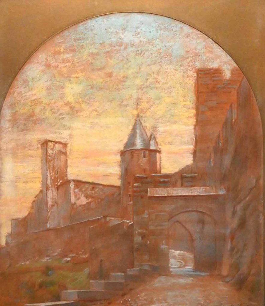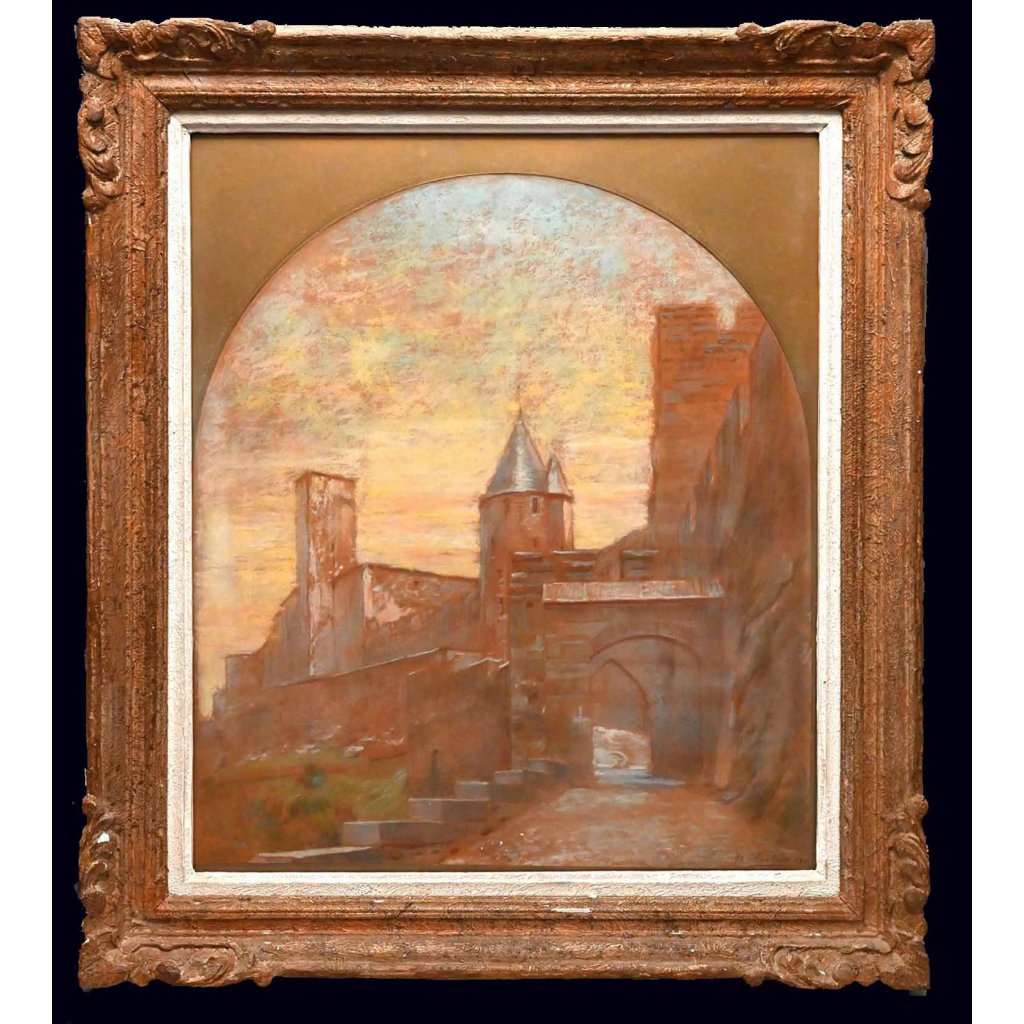 Pastel et crayon gras sur papier, cintré dans la partie supérieure, signé en bas à droite et daté 1900.